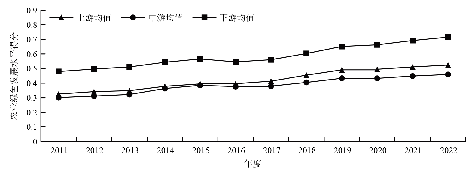 Comprehensive index of agricultural green development level in the Yellow River Basin, 2011-2022"