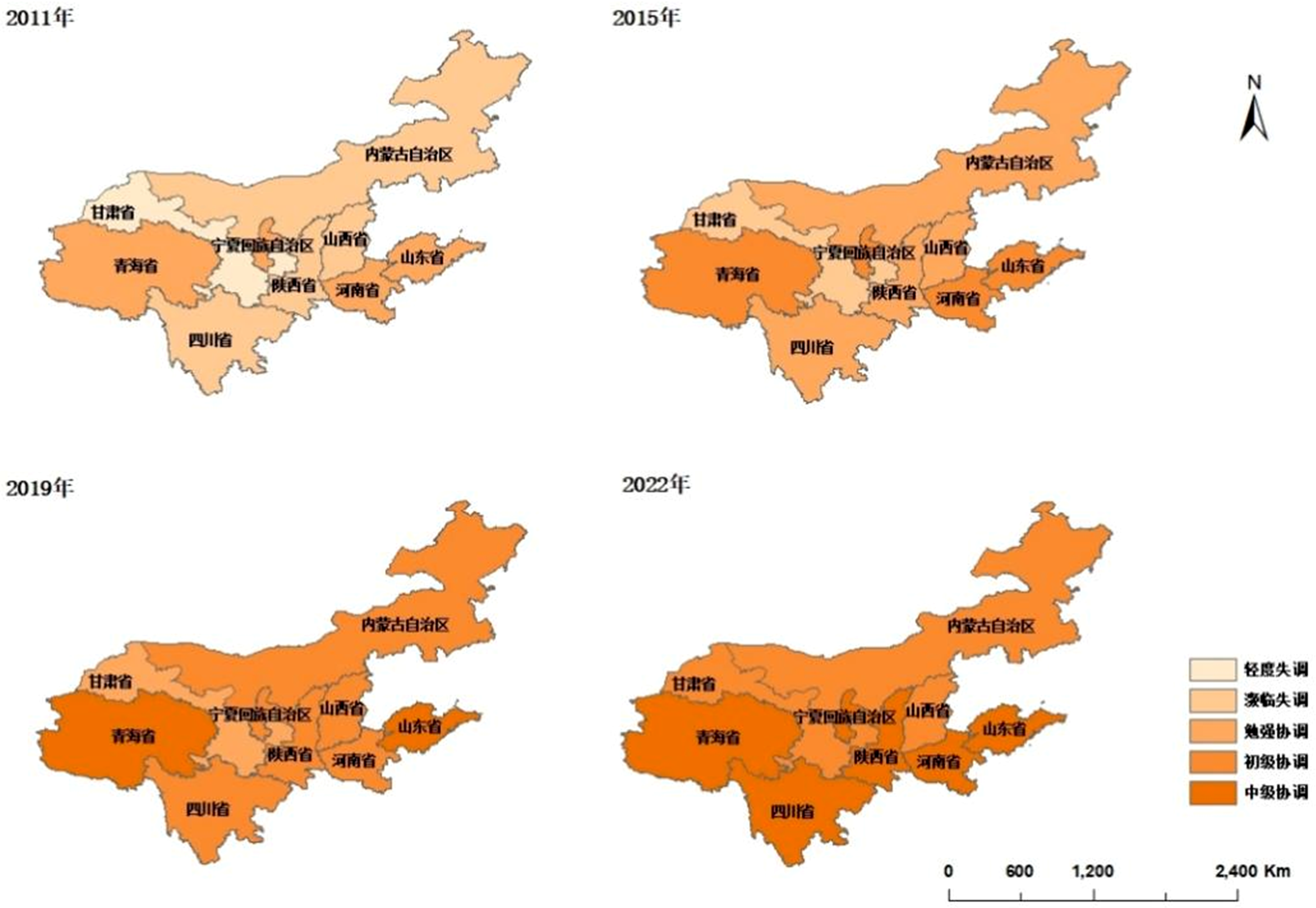 | 年份 | 甘肃 | 四川 | 宁夏 | 青海 | 内蒙古 | 山西 | 陕西 | 河南 | 山东 | 流域均值 |