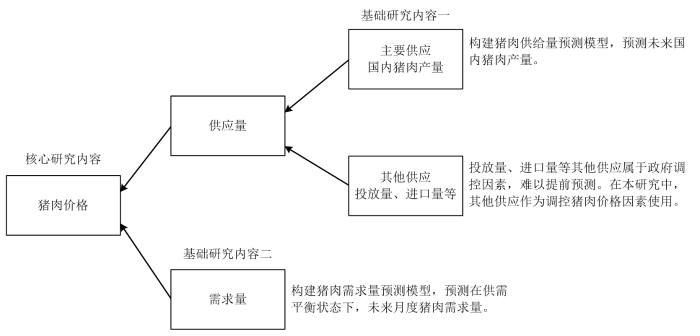 从以往研究来看,学者们针对某一时期的猪肉价格预测研究较多,但从长期猪肉供需均衡角度出发,展开对猪肉供需情况和价格走势的预测较少。现有研究难以从猪肉的供应和需求情况出发,提供猪肉供需预测量,并基于供需量给出价格走势预测,为政府决策宏观调控政策提供指导。