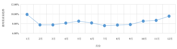 每个月猪肉需求量为年猪肉总需求量与猪肉需求趋势之积,如下式所示。